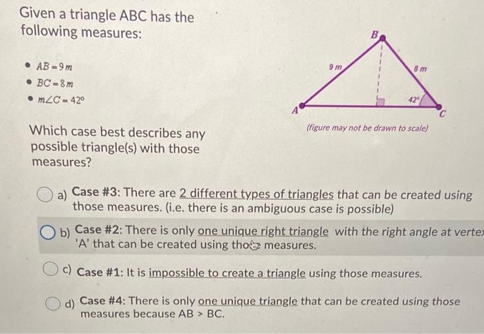 Solved Given Triangle Abc Has The Following Measures Ab Chegg Com